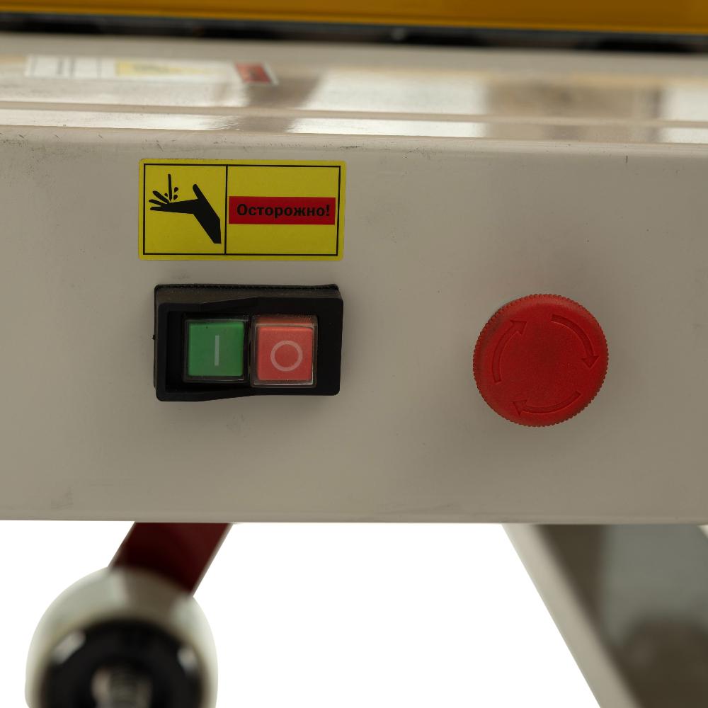 - Высокая производительность при низком энергопотреблении. Скорость запечатывания достигает 10–25 коробов в минуту, при этом потребляемая мощность составляет всего 180 Вт. Оборудование работает от стандартной сети 220 В.