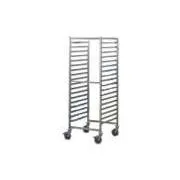 - Удобная разборная конструкция на четырех колесах позволяет без особых усилий транспортировать как хлебобулочные заготовки, так и готовую продукцию располагающуюся на пекарских листах